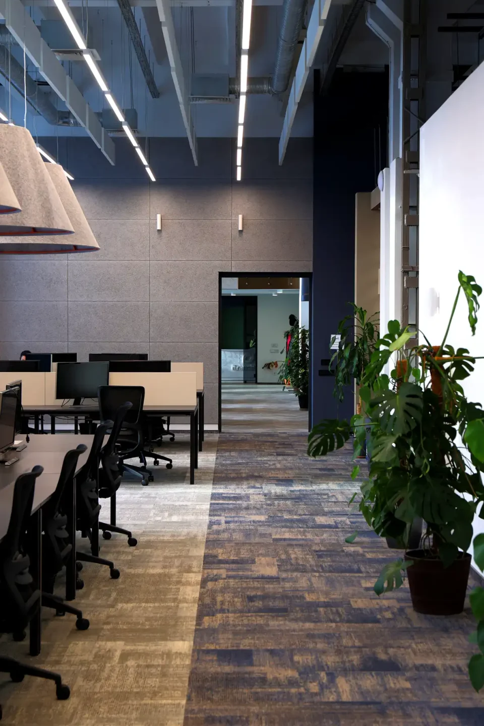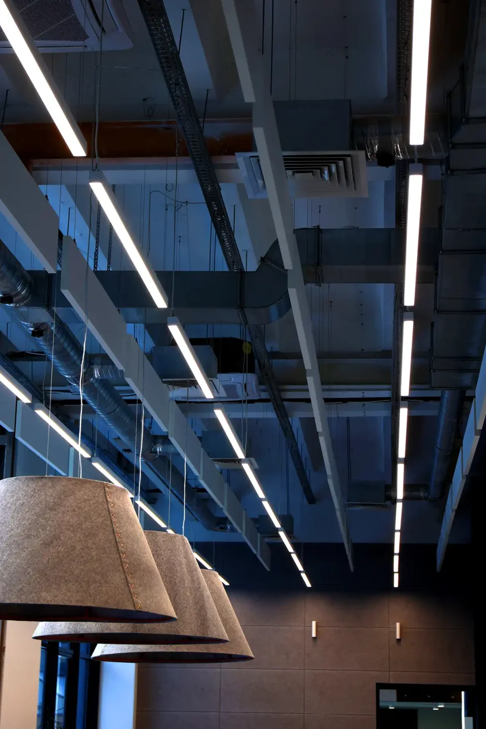 Мы реализовали уникальную концепцию освещения для офиса iTransition, отражающую фирменный стиль компании. Задача — создать атмосферное, но функциональное освещение для темного, стильного пространства, которое поддерживает концентрацию и комфорт в течение дня.