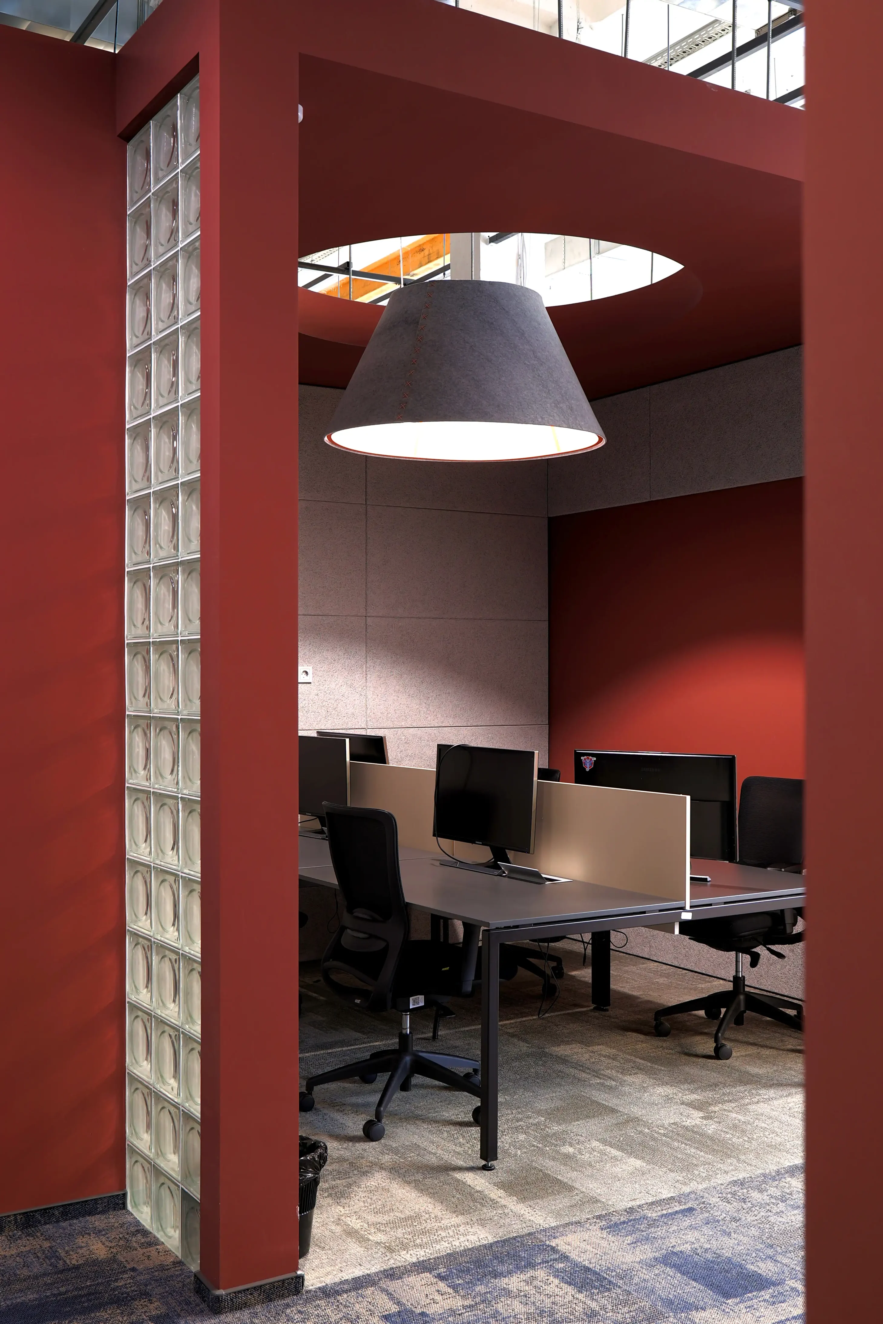 Тщательно подобрана цветовая температура и интенсивность света для минимизации бликов на мониторах и комфортной работы с документами.